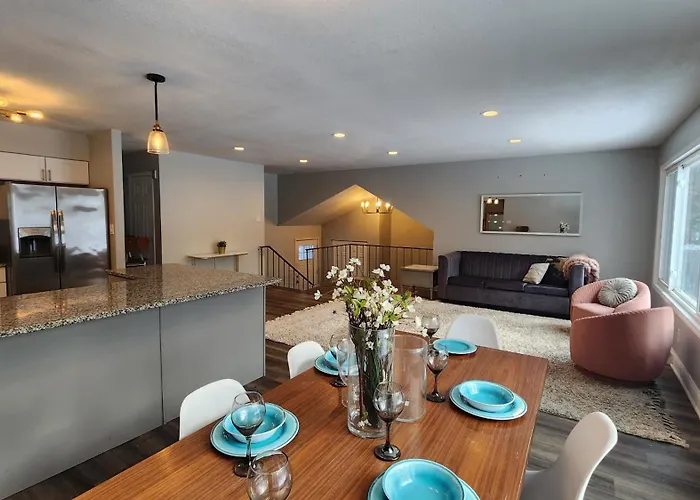 Among the top dining spots near Sprawling Woodland Retreat Villa are restaurant The Beach Cafe, renowned for its American dishes, and bar Flamingo Pizza of Miller, known for its expertise in American.